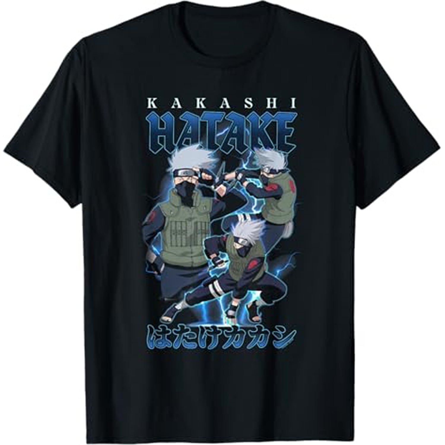 Narutos Shippuden Retro Kakashi Lightning Poses Anime T-Shirt